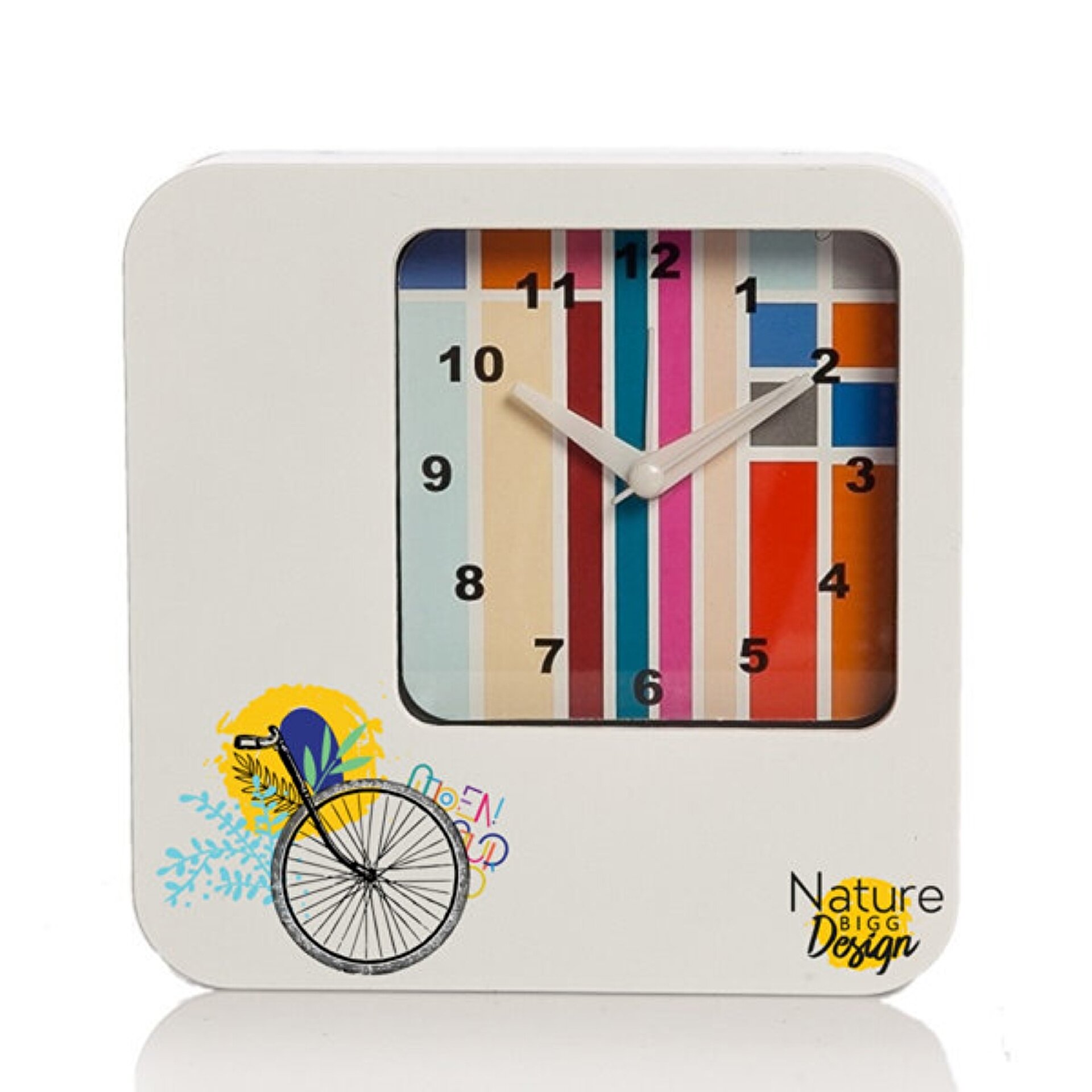 In the modern world where everything is always well organized and everyone always wants to be on time, having an alarm clock to help you to wake up is important. It is always when a device fails to perform his duties due to a mechanical fault. Our product is made by high quality materials and it is durable. It has a modern look with colorful patterns. We produced special design products with the collection of ''Nature''.'' The Nature'' collection created by Aysu Bekar. She was inspired by nature and healthy life essentials. She wants to create awareness to exercise.She used bicycle motive in paintings to encourage people for a healthy life.